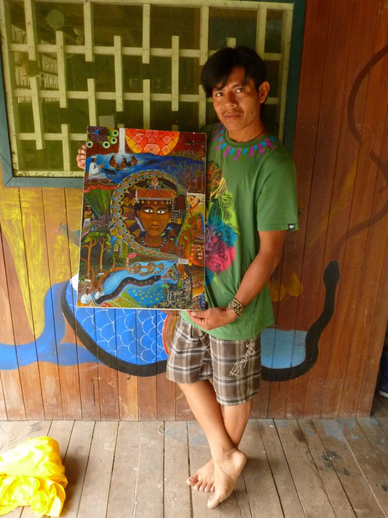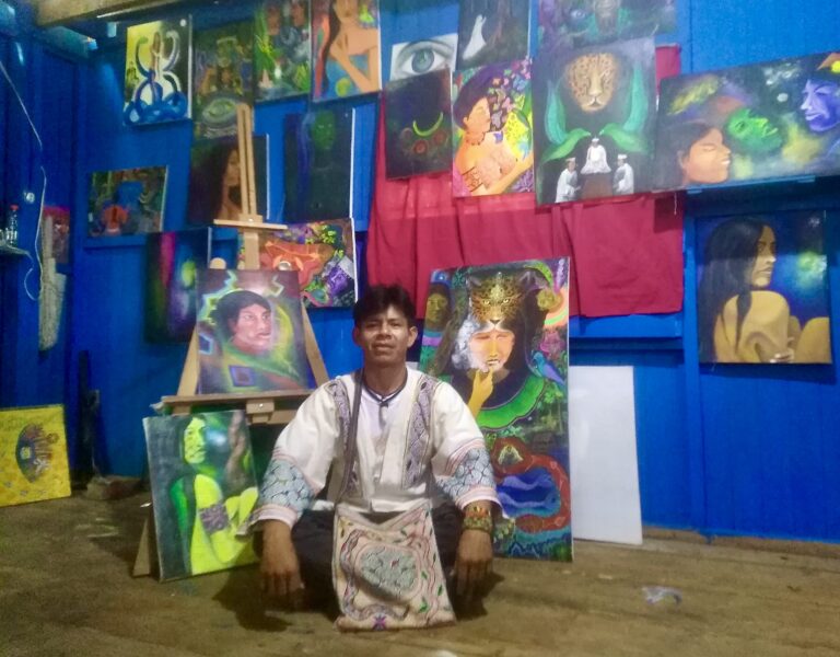 Alongside his healing practice, he is a self-taught painter whose visionary art is inspired by ayahuasca ceremonies, a musician who plays sacred melodies on the quena, and a guide who leads visitors into the jungle with warmth, insight, and care.